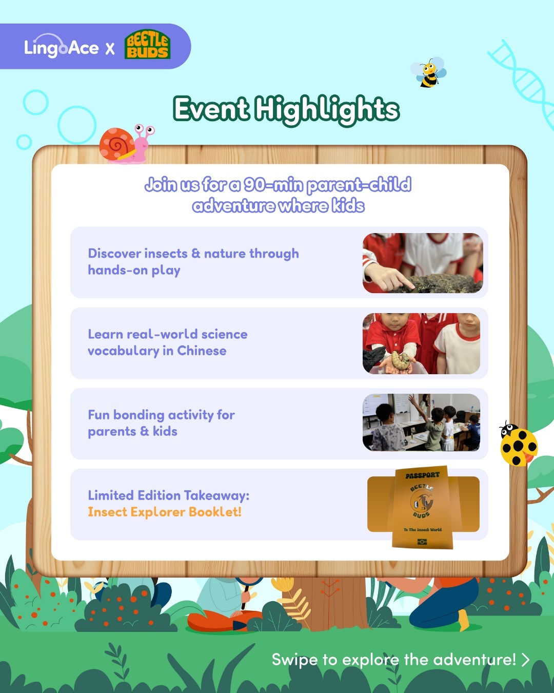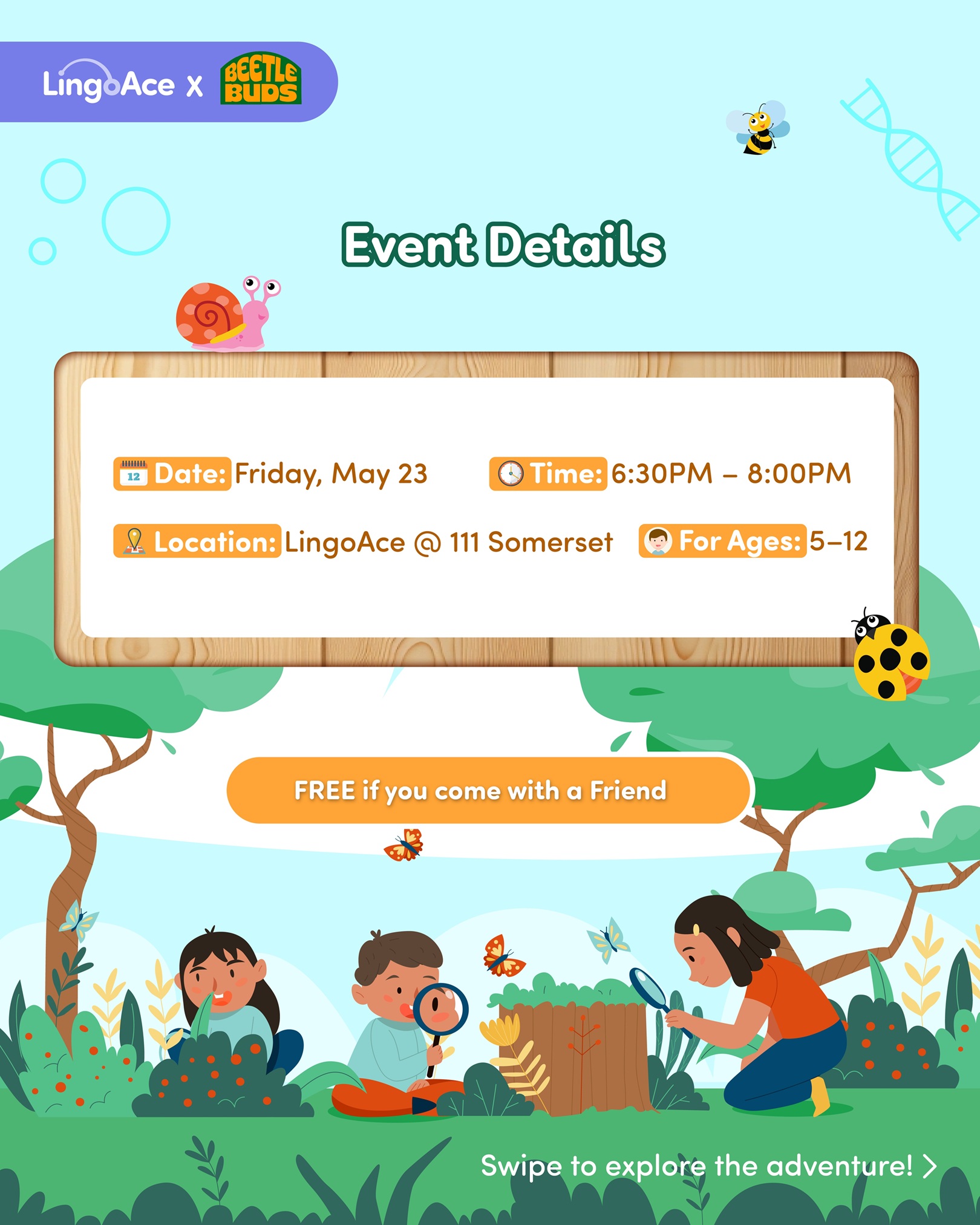 Join us for an exciting educational adventure to discover the amazing animals that live around us! Your child will embark on a journey with Timmy and Steffi as they explore local biodiversity through an engaging video and hands-on activities from our specially designed activity books. This programme teaches children about the many different types of wildlife that we share our green spaces with and how we can be good neighbours to them!