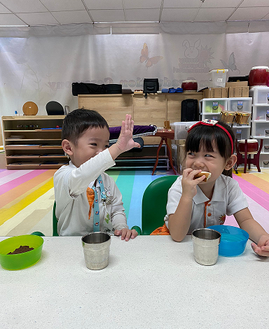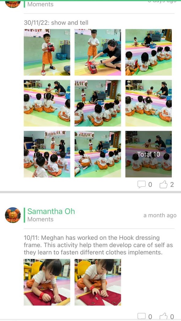 Sunny Bunny Montessori has very strong academic curriculum as well. My son develops cognitive and language skills quickly from the school curriculum. He can even recognise Chinese characters and enjoys reading. He develops good habits that he finds books to read on his own. He enjoys singing the songs learned from school and showcased to us when gets back home.